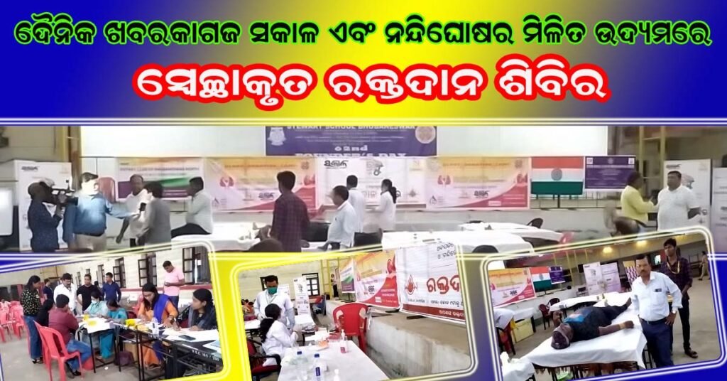 ଦୈନିକ ଖବରକାଗଜ ସକାଳ ଓ ନନ୍ଦିଘୋଷ ଟିଭିର ମିଳିତ ସହଯୋଗରେ ସ୍ବେଚ୍ଛାକୃତ ରକ୍ତଦାନ ଶିବିର !!!