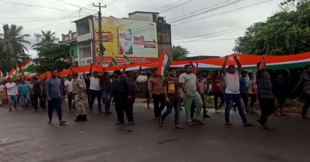 ବାଲୁଗାଁ ( ଆୱାଜ ମିଡ଼ିଆ ) – ରାକେଶ ସାହୁ : ଅମୃତ ମହୋତ୍ସବ ସମାରୋହ ସମିତି, ବାଲୁଗାଁ ଆନୁକୂଲ୍ୟରେ ଆଜି ଅପରାହ୍ନରେ ତ୍ରିରଙ୍ଗା ଶୋଭାଯାତ୍ରା ଅନୁଷ୍ଠିତ ହୋଇଯାଇଛି ।ଲଘୁଚାପ ଜନିତ ଲଗାଣ ବର୍ଷା ସତ୍ତ୍ୱେ ଦେଶପ୍ରେମରେ ବିଭୋର ବାଣପୁର , ବାଲୁଗାଁ ଓ ଚିଲିକା ବାସୀ ୭୫ ମିଟର ତ୍ରିରଙ୍ଗାକୁ ଧରି ରାସ୍ତାରେ ବର୍ଷାରେ ଭିଜି ଭିଜି ଶୋଭାଯାତ୍ରାରେ ସାମିଲ ହୋଇ ଭାରତ ମାତା କି ଜୟ ନାରା ଦେଇ ପଦଯାତ୍ରାରେ ଯାଇଥିଲେ ।