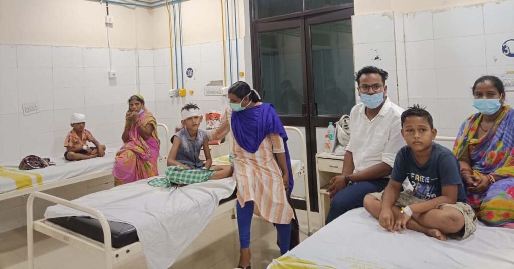 ଅନୁଗୁଳ ( ଆୱାଜ ମିଡ଼ିଆ ) – ଚିନ୍ମୟୀ ଦାସ : ପୋକତୁଙ୍ଗା ଗ୍ରାମରେ ଅଭାବନୀୟ ଘଟଣା ! ସ୍କୁଲ ଟେମ୍ପୋ ଓଲଟି ତିନି ଛାତ୍ର ଗୁରୁତର ହୋଇ ଅନଗୁଳ ମୁଖ୍ୟ ଚିକିତ୍ସାଳୟ ରେ ଭର୍ତ୍ତି ହୋଇଛନ୍ତି ! ସୂଚନା ମୁତାବକ ବନ୍ତଳା ଥାନା ଅନ୍ତର୍ଗତ ପୋକତୁଙ୍ଗା ଗ୍ରାମ ଠାରେ ସ୍କୁଲ ଟେମ୍ପୋ ଟି ଭାରସାମ୍ୟ ହରାଇ ଓଲଟି ପଡିଥିଲା, ଗ୍ରାମ ର କିଛି ବ୍ୟକ୍ତି ଆହତ ମାନଙ୍କୁ ଉଦ୍ଧାର କରିବା ସହିତ ଦୁର୍ଘଟଣା ସମ୍ପର୍କରେ ସମାଜସେବୀଙ୍କୁ ଫୋନ ଯୋଗେ ଜଣାଇଥିଲେ ! ଖବର ପାଇ ତୁରନ୍ତ ସେଠାରେ ପହଂଚି ପିଲାମାନଙ୍କୁ ଚିକିତ୍ସା ରେ ସହଯୋଗ କରିବା ସହିତ ସ୍ଥାନୀୟ ସରପଞ୍ଚ ସୁଜିତ ମହାଳିକ ଙ୍କୁ ଖବର ଦିଆଯାଇଥିଲା ! ଟେମ୍ପୋ ଚାଳକ ଙ୍କ ସମେତ ଜଗଦିଶ ଦେହୁରୀ (10) , ବୁବୁନ ସାହୁ(11), ମହେଶ ପ୍ରଧାନ(7)ଙ୍କୁ ଉଦ୍ଧାର କରାଯାଇ ଅନୁଗୁଳ ଜିଲ୍ଲା ମୁଖ୍ୟ ଚିକିତ୍ସାଳୟରେ ଭର୍ତ୍ତି କରାଯାଇ ଚିକିତ୍ସା କରାଯାଇଥିଲା !