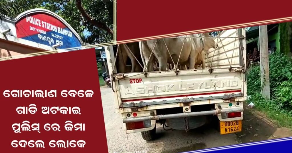 ବାଣପୁର ତୁମୁରାପୁଟ ଗ୍ରାମ ଛକରେ ଗୋରୁ ଚାଲାଣ ଗାଡ଼ି ଅଟକ : ଥାନାରେ ଜିମା ଦେଲେ ଗ୍ରାମବାସୀ !!!