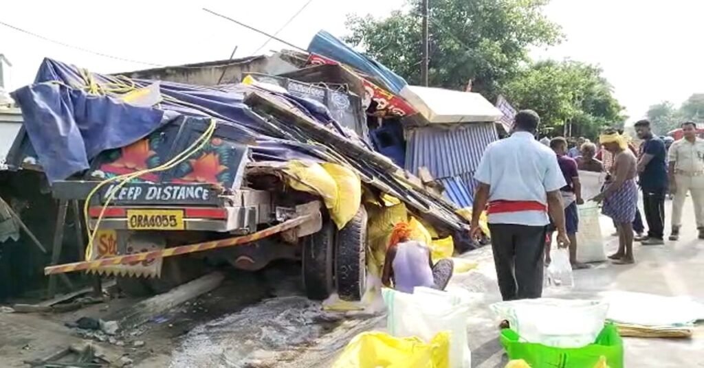 ଟ୍ରକ ପଛରେ ଟ୍ରକ ଧକ୍କା ଦେବାରୁ ଦୋକାନ ଭିତରକୁ ମାଡ଼ିଗଲା ସାର ବୋଝେଇ ଟ୍ରକ !!!