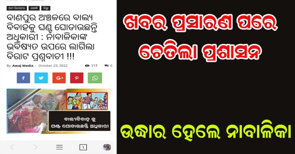 ବାଲ୍ୟ ବିବାହ ସମ୍ପର୍କିତ ଖବର ପ୍ରସାରଣ ପରେ ବାଣପୁର ଥାନା ଅଞ୍ଚଳରୁ ଉଦ୍ଧାର ହେଲେ ନାବାଳିକା !!!