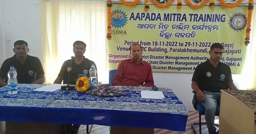 ଗଜପତି ( ଆୱାଜ ମିଡ଼ିଆ ) – ବିବେକାନନ୍ଦ ବେହେରା : ଗଜପତି ଜିଲ୍ଲା ସଦର ମହକୁମା ପାରଳାଖେମୁଣ୍ଡି ସ୍ଥିତ ଡିପିଆରସି ସଭା ଗୃହ ଠାରେ ଆପଦା ମିତ୍ର ତାଲିମ କାର୍ଯ୍ୟକ୍ରମ ଅନୁଷ୍ଠିତ ହୋଇଯାଇଛି । ଏହି କାର୍ଯ୍ୟକ୍ରମକୁ ଅତିରିକ୍ତ ଜିଲ୍ଲାପାଳ ସଂଗ୍ରାମ ଶେଖର ପଣ୍ଡା ମୁଖ୍ୟ ଅତିଥି ଭାବେ ଯୋଗଦେଇ ପ୍ରଦୀପ ପ୍ରଜ୍ବଳନ କରି ଶୁଭାରମ୍ଭ କରିଥିଲେ । ଅନ୍ୟତମ ଅତିଥି ଭାବେ ଏନସିସି ନୋଡାଲ ଅଫିସର ସୁମନ୍ତ ବେହେରା, OSDMA ର ପ୍ରଦ୍ୟୁସ କୁମାର ଶତପଥୀ, OSAP ର ବାଟାଲିୟନ ହାବିଲଦାର ରଜତ କୁମାର ସାହୁ, ବିଦେଶୀ ପ୍ରଧାନ, ପ୍ରଣବ କୁମାର ଜେନା ପ୍ରମୁଖ ଉପସ୍ଥିତ ରହି ଛାତ୍ର ଛାତ୍ରୀ ମାନଙ୍କୁ ତାଲିମ ପ୍ରଦାନ କରିଛନ୍ତି । ଏହି ତାଲିମ ନଭେମ୍ବର 18 ରୁ 29 ପର୍ଯ୍ୟନ୍ତ 12 ଦିନ ପ୍ରଦାନ କରାଯିବ । ଏହି ତାଲିମରେ 18 ବର୍ଷ ରୁ 30 ବର୍ଷ ର ପୁରୁଷ ଓ ମହିଳା ମାନଙ୍କୁ ତାଲିମ ଦିଆ ଯାଉଛି । ପ୍ରାକୃତିକ ବିପର୍ଯ୍ୟୟ ସମୟରେ ଲୋକଙ୍କୁ ସାହାଯ୍ୟ ସହଯୋଗ ସୁରକ୍ଷା କରିବା ପାଇଁ ତାଲିମ ପ୍ରଦାନ କରାଯାଉଛି । ପ୍ରାକୃତିକ ବିପର୍ଯ୍ୟୟ ସମୟରେ ଲୋକଙ୍କ ଧନ ଜୀବନ ସୁରକ୍ଷା କରିବେ ଏବଂ ତାସହ ଅସହାୟ ଲୋକଙ୍କୁ ସାହାଯ୍ୟ ସହଯୋଗ କରିବେ ବୋଲି ଜଣାପଡିଛି ।