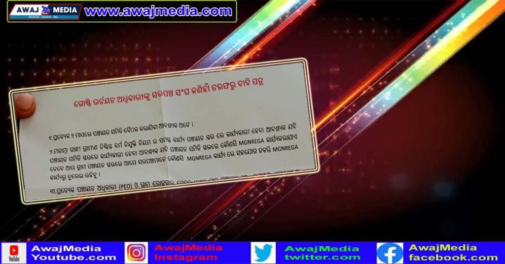 କଣିହାଁ ସରପଞ୍ଚ ସଙ୍ଘ ତରଫରୁ ବିଡିଓ ଙ୍କୁ ଦାବିପତ୍ର !!!