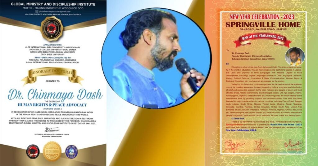 ଚିନ୍ମୟ ଦାଶଙ୍କୁ ଅନରାରି ଡକ୍ଟରେଟ ସହ ମ୍ୟାନ୍ ଅଫ୍ ଦି ଇୟର ଆୱାର୍ଡ଼ !!!
