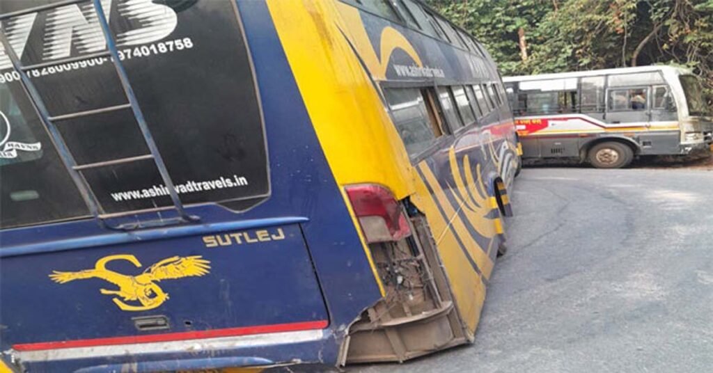 କନ୍ଧମାଳ ( ଆୱାଜ ମିଡ଼ିଆ ) – ସଞ୍ଜୟ କୁମାର ପାଣିଗ୍ରାହୀ : କନ୍ଧମାଳ ଜିଲା ବାଲିଗୁଡା ଉପଖଣ୍ଡ ଅନ୍ତର୍ଗତ ଦାରିଙ୍ଗବାଡି କୁ ସଂଯୋଗ କରୁଥିବା ୫୯ ନଂ ଜାତୀୟ ରାଜପଥ ଗାଜଲବାଡ଼ି ଘାଟିର ୯ ନଂ ବୁଲାଣିରେ ବୁଧବାର ଏକ ମର୍ମନ୍ତୁଦ ଦୁର୍ଘଟଣା ଘଟିଛି । ୨ ଟି ବସ୍‌ ମୁହାଁମୁହିଁ ପରିସ୍ଥିତି ହେବା ଫଳରେ ଉଭୟ ବସ୍‌ର ଯାତ୍ରୀ ମାନେ ବଡ ଅଘଟଣରୁ ରକ୍ଷା ପାଇ ଯାଇଛନ୍ତି । ଖବର ପାଇ ନିକଟସ୍ଥ ସୋରଡ଼ା ପୋଲିସ ଘଟଣାର ଅନୁଧ୍ୟାନ କରୁଥିବା ଜଣାପଡିଛି ! ଘଟଣାରୁ ପ୍ରକାଶ ଯେ, ଦାରିଙ୍ଗବାଡି ରୁ ଏକ ସରକାରୀ ବସ ଭଞ୍ଜନଗର ଯାଉଥିବା ବେଳେ ବିପରୀତ ଦିଗରୁ ଏକ ଘରୋଇ ବସ ଛତିଶଗଡ଼, ବିହାର ରାଜ୍ୟ ରୁ କିଛି ପର୍ଯ୍ୟଟକଙ୍କୁ ନେଇ ଦାରିଙ୍ଗବାଡି ଅଭିମୁଖେ ଯାତ୍ରା କରୁଥିଲା । ତେବେ ବାହାର ରାଜ୍ୟର ବସ୍‌ ଚାଳକ ଉକ୍ତ ଅଣ ଓସାରିଆ ଘାଟି ରାସ୍ତା ସମ୍ପର୍କରେ ଅଜଣା ରହିଥିବା ବେଳେ ୯ ନମ୍ବର ବୁଲାଣିରେ ସରକାରୀ ବସ୍‌ ସହ ମୁହାଁ ମୁହିଁ ହୋଇଥିଲା । ତେବେ ସରକାରୀ ବସ୍‌ର ଚାଳକଙ୍କ ଉପସ୍ଥିତ ବୁଦ୍ଧି ଯୋଗୁ ଏକ ବଡ ଧରଣର ଦୁର୍ଘଟଣା ଟଳିଯାଇଛି । ଘାଟିରେ ଛତିଶଗଡ଼ ବସ୍‌ ଟି ଅଟକି ରହିଥିବାରୁ ଏବେ ସେହି ରାସ୍ତାରେ ଗାଡି ଚଳାଚଳ ବାଧାପ୍ରାପ୍ତ ହୋଇଛି । ଅନ୍ୟପଟେ, ସରକାରୀ ବସ୍‌ଟି ଗନ୍ତବ୍ୟସ୍ଥଳକୁ ଯାତ୍ରା କରିଥିବା ଜଣାପଡିଛି l