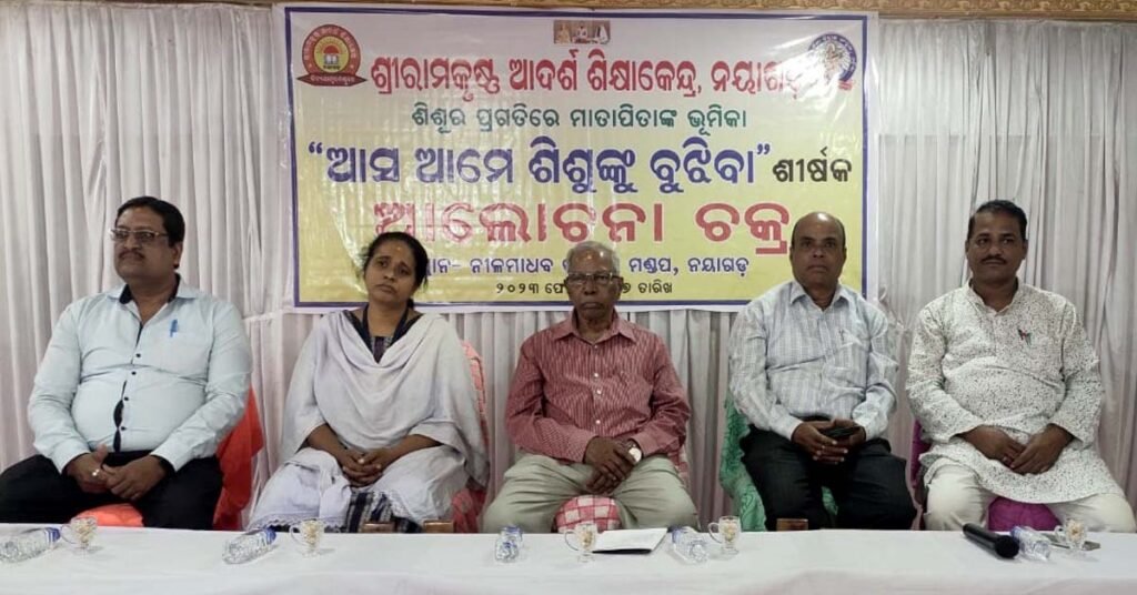 ନୟାଗଡ ( ଆୱାଜ ମିଡ଼ିଆ ) – ବିଶ୍ବଭୂଷଣ ମହାପାତ୍ର : ଖଣ୍ଡପଡା ରୋଡସ୍ଥ ନୀଳମାଧବ କଲ୍ଯାଣ ମଣ୍ଡପ ଠାରେ ଶ୍ରୀରାମକୃଷ୍ଣ ଆଦର୍ଶ ଶିକ୍ଷାକେନ୍ଦ୍ର, ନୟାଗଡ଼ ତରଫରୁ ” ଆସ ଆମେ ଶିଶୁଙ୍କୁ ବୁଝିବା” ଶୀର୍ଷକ ଆଲୋଚନା ଚକ୍ର ଅନୁଷ୍ଠିତ ହୋଇଯାଇଛି। ବିଦ୍ଯାଳୟର ପ୍ରତିଷ୍ଠାତା ସଂପାଦକ ଶ୍ରୀଧର ସାହୁଙ୍କ ସଂଯୋଜନାରେ ଅନୁଷ୍ଠିତ ଏହି ଆଲୋଚନା ଚକ୍ରରେ ୩୫୦ ଜଣ ଅଭିଭାବକଙ୍କୁ ନେଇ ଶିଶୁ ମାନଙ୍କର ପ୍ରଗତିରେ ମାତାପିତାଙ୍କ ଭୂମିକା ବିଷୟରେ ଆଲୋଚନା ହୋଇଥିଲା ।