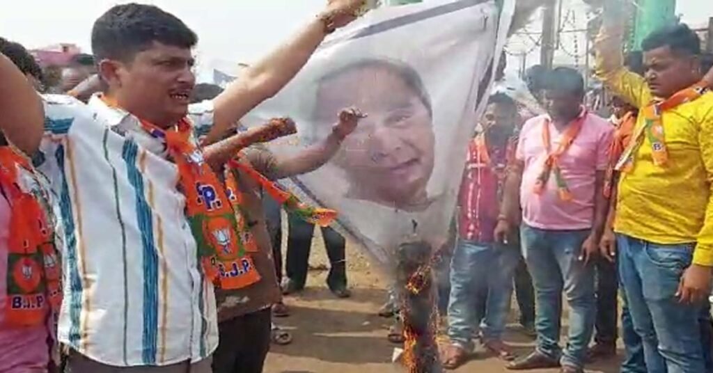 ବିଜେପି ଯୁବମୋର୍ଚ୍ଚା ପକ୍ଷରୁ ମୁଖ୍ୟମନ୍ତ୍ରୀଙ୍କ କୁଶ ପୁତ୍ତଳିକା ଦାହ !!!