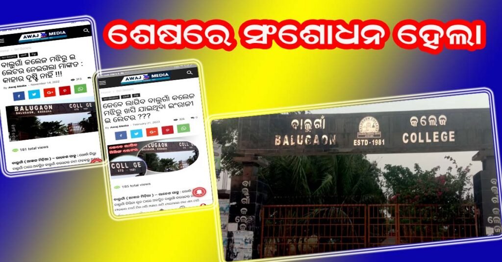 ଖବର ପ୍ରସାରଣ ପରେ ସଂଶୋଧନ ହେଲା ବାଲୁଗାଁ କଲେଜ ନାମ ଫଳକ !!!