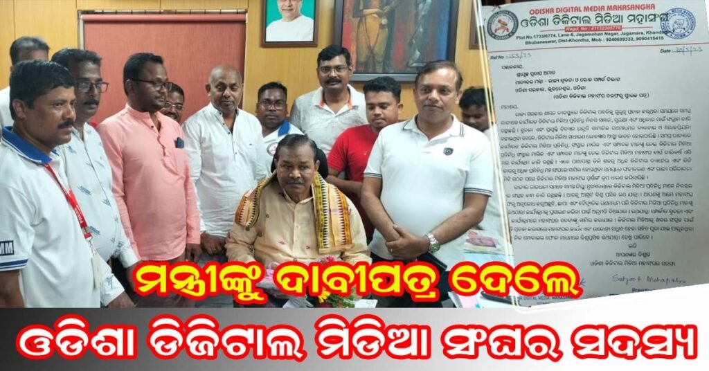 ରାଜ୍ୟ ସୂଚନା ଓ ଲୋକ ସମ୍ପର୍କ ମନ୍ତ୍ରୀ ଙ୍କୁ ଓଡିଶା ଡିଜିଟାଲ ମହାସଂଘ ତରଫରୁ ସ୍ମାରକପତ୍ର !!!