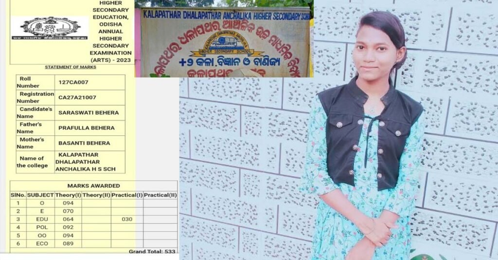 କଳାପଥର ଧଳାପଥର ମହାବିଦ୍ୟାଳୟର ଛାତ୍ରୀ ସରସ୍ବତୀ ବେହେରା +୨ କଳାର ବାଙ୍କୀ ଟପ୍ପର !!!