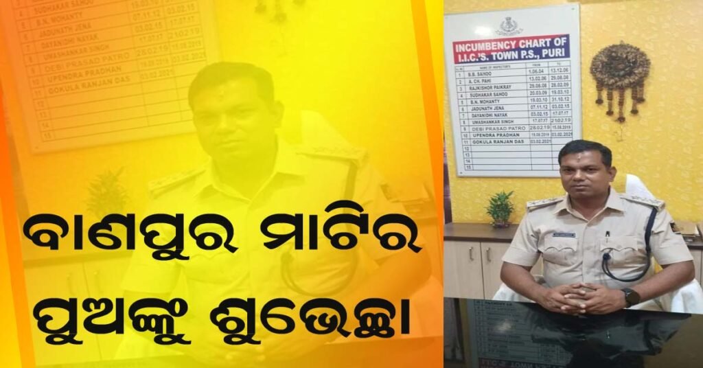 ପୁରୀ ଟାଉନ ଥାନାରେ ଭାରପ୍ରାପ୍ତ ଅଧିକାରୀ ଭାବେ ଯୋଗଦେଲେ ବାଣପୁର ମାଟିର ପୁଅ ସୁନୀଲ କୁମାର ପ୍ରଧାନ : ବାଣପୁର ବାସୀଙ୍କ ଶୁଭେଛା !!!