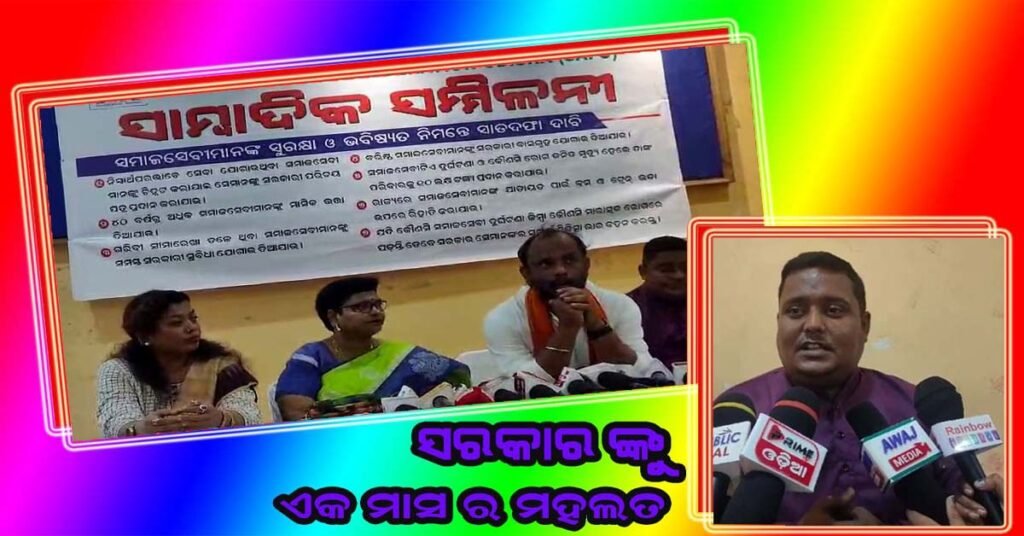 ସମଗ୍ର ରାଜ୍ୟରେ କାର୍ଯ୍ୟରତ ସମାଜସେବୀ ମାନଙ୍କୁ ଚିହ୍ନଟ ସହିତ ପରିଚୟ ପତ୍ର ପ୍ରଦାନ , ଦୁର୍ଘଟଣା ଜନିତ ବୀମା ରାଶି ପ୍ରଦାନ , ଯାତାୟାତ ସମୟରେ ରିହାତି ପ୍ରଦାନ , ବୟସାଧିକ ସମାଜସେବୀ ଙ୍କୁ ଭତ୍ତା ପ୍ରଦାନ , ବିଭିନ୍ନ ସରକାରୀ ଯୋଜନାରେ ହିତାଧିକାରୀ ଭାବରେ ସାମିଲ ପ୍ରଭୃତି ଦାବୀ ଉପସ୍ଥାପନା କରାଯାଇଛି ! ଆସନ୍ତା ଏକ ମାସ ମଧ୍ୟରେ ସରକାର ଦାବୀ ପୂରଣ ଦିଗରେ ପଦକ୍ଷେପ ନେବାକୁ ଅନୁରୋଧ କରିଛନ୍ତି ସଂଗଠନର ସଦସ୍ୟ !