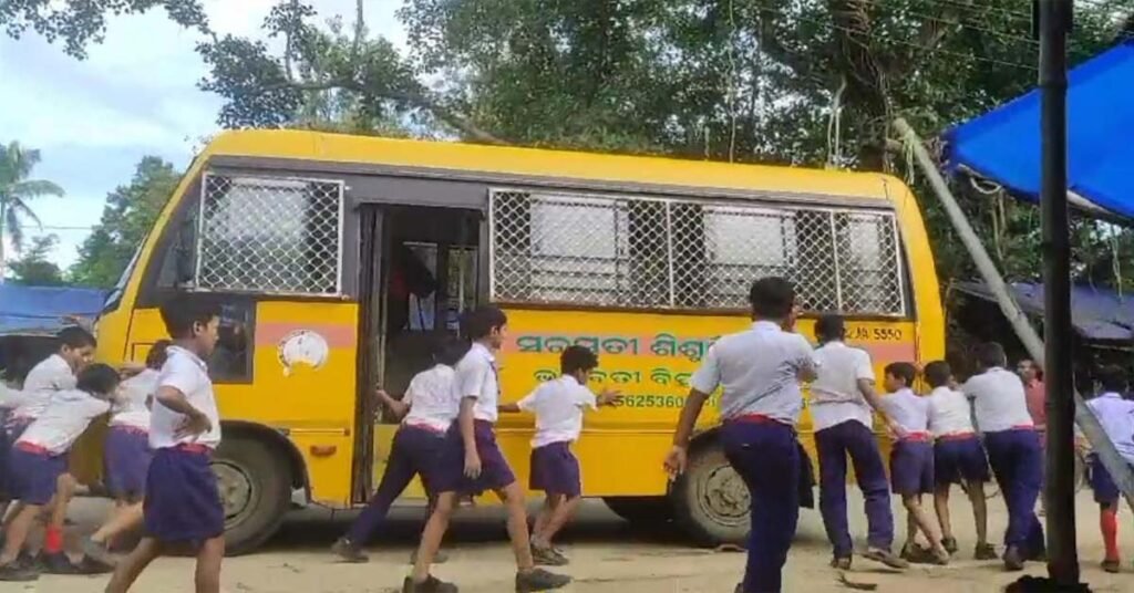 ଅଧ କିଲୋମିଟର ପର୍ଯ୍ୟନ୍ତ ସ୍କୁଲ ବସ କୁ ଠେଲି ଠେଲି ନେଲେ ବାଣପୁର ସରସ୍ଵତୀ ଶିଶୁ ବିଦ୍ୟାମନ୍ଦିର ଛାତ୍ର !!!