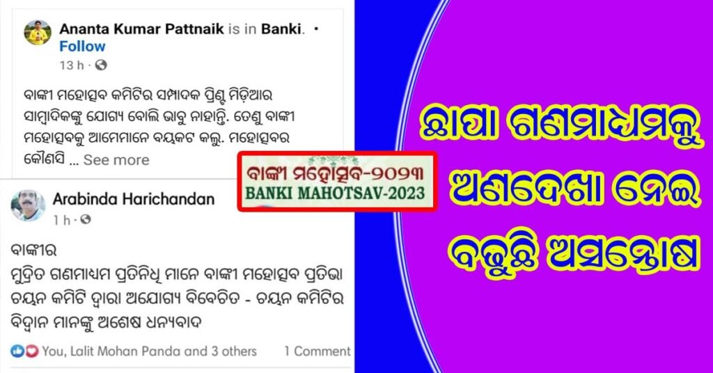 ବାଙ୍କୀ ( ଆୱାଜ ମିଡ଼ିଆ ) – ଅନନ୍ତ ରଣା : ଅଷ୍ଟଶକ୍ତି ପୀଠ ମା ଚର୍ଚ୍ଚିକା କ୍ଷେତ୍ର ବାଙ୍କୀର ଗଣପର୍ବ ହେଉଛି କୁମାର ପୂର୍ଣିମା ! କୁମାର ପୂର୍ଣିମାରେ ଆୟୋଜିତ ହୋଇଥାଏ ବାଙ୍କୀ ମହୋତ୍ସବ ! ବାଙ୍କୀ ର ଐତିହ୍ୟ ସଂସ୍କୃତି ଓ ପରମ୍ପରାର ତ୍ରିବେଣୀ ସଙ୍ଗମ ନାମରେ ଖ୍ୟାତ ବାଙ୍କୀ ମହୋତ୍ସବ ଯେତିକି ଚିତ୍ରିତ ସେତିକି ଚର୍ଚିତ ମଧ୍ୟ ! ପ୍ରତିବର୍ଷ କୌଣସି ନା କୌଣସି କାରଣକୁ ନେଇ ଦେଖାଦିଏ ବିବାଦ , ତେବେ ଚଳିତ ବର୍ଷ ମହୋତ୍ସବ ପୂର୍ବରୁ ଆରମ୍ଭ ହୋଇଛି ଇସ୍ୟୁ ! ମଞ୍ଚରେ ସାଧାରଣ ସଭା , ପ୍ରତିଭା ସମ୍ମାନ , କଳା ପରିବେଷଣ ଇତ୍ୟାଦି କାର୍ଯ୍ୟକ୍ରମ ରହିଛି ! ସମ୍ବର୍ଦ୍ଧିତ ପ୍ରତିଭାଙ୍କ ନାମ ଘୋଷଣା ପରେ ଆରମ୍ଭ ହୋଇଛି ମୃଦୁ ଗୁଞ୍ଜରଣ ! ବିଶେଷ କରି ସାମ୍ବାଦିକତା ପାଇଁ ନାମ ଘୋଷଣା ପରେ କିଛି ସାମ୍ବାଦିକ ନିଜର ପ୍ରତିକ୍ରିୟା ପ୍ରକାଶ କରିଛନ୍ତି ! ବରିଷ୍ଠ ସାମ୍ବାଦିକ ପୂର୍ଣ୍ଣଚନ୍ଦ୍ର ସାହୁଙ୍କୁ ସମ୍ମାନିତ କରାଯିବା ନେଇ କମିଟି ପକ୍ଷରୁ ସ୍ଥିର ହୋଇଛି ! ତେବେ ସ୍ଥିର ହୋଇଥିବା ନାମକୁ ନେଇ କେହି ଅସନ୍ତୁଷ୍ଟ ନଥିବା ସମୟରେ , ଛାପା ଗଣମାଧ୍ୟମ ପ୍ରତିନିଧିଙ୍କୁ ଉପେକ୍ଷା କରାଯାଉଥିବା ନେଇ ସୃଷ୍ଟି ହୋଇଛି ପ୍ରତିକ୍ରିୟା ! ଏପରିକି ଗତ ବର୍ଷ ମଞ୍ଚରେ ସମ୍ବର୍ଦ୍ଧିତ ହୋଇଥିବା ସାମ୍ବାଦିକ ଅନନ୍ତ ପଟ୍ଟନାୟକ ମଧ୍ୟ , ସୋସାଲ ମିଡ଼ିଆ ରେ ସିଧା ସଳଖ ମହୋତ୍ସବ କମିଟି ସମ୍ପାଦକଙ୍କୁ ଆକ୍ଷେପ କରି ପୋଷ୍ଟ କରିଛନ୍ତି ! ସେହିପରି ବାଙ୍କୀର ବରିଷ୍ଠ ସାମ୍ବାଦିକ ତଥା ମା ଚର୍ଚ୍ଚିକା ସାମ୍ବାଦିକ ସଂଘର ସଭାପତି ଅରବିନ୍ଦ ହରିଚନ୍ଦନ କମିଟିର ଦୂରଦର୍ଶିତା ନେଇ ଉଠାଇଛନ୍ତି ପ୍ରଶ୍ନ ! ତେବେ ଏ ପ୍ରସଙ୍ଗ ଏଥର କିଛି ଲୋକଙ୍କ ପାଇଁ ନୂଆ , ହେଲେ ଆମର ଏ ପ୍ରଶ୍ନ ବହୁ ପୁରୁଣା ! ଏପରିକି ମଞ୍ଚରେ ସମ୍ମାନିତ ହେବା ପାଇଁ ଇଛୁକ ବ୍ୟକ୍ତିଙ୍କ ଠାରୁ ଦରଖାସ୍ତ ଆହ୍ୱାନ କରାଯିବା ପରେ , ଆୱାଜ ମିଡ଼ିଆ ର ବ୍ୟୁରୋ ଚିଫ ତାହାକୁ ବିରୋଧ କରି ସମ୍ପାଦକଙ୍କୁ ପ୍ରଶ୍ନ କରିଥିଲେ ! ଏବେ ଦେଖିବାକୁ ବାକି ରହିଲା , ମହୋତ୍ସବ ଖବର ପ୍ରସାରଣ ବୟକଟ ଚେତାବନୀ ପରେ ଆଗକୁ କଣ ହେଉଛି ସାଲିସ ! ମହୋତ୍ସବ କମିଟି ତାର ନିଷ୍ପତ୍ତିରେ ଅଟଳ ରହୁଛି , ନା ଅସନ୍ତୁଷ୍ଟ ସାମ୍ବାଦିକ ମାନେ ନିଜ ଜିଦ ରେ ଅତୁଟ ରହୁଛନ୍ତି ! ତେବେ ମହୋତ୍ସବ କମିଟିର ପ୍ରତିଷ୍ଠାତା ସଭାପତି , ବାଙ୍କୀର ପୂର୍ବତନ ବିଧାୟକ , ବରିଷ୍ଠ ବିଜେଡି ନେତା ପ୍ରଭାତ ତ୍ରିପାଠୀ ସମସ୍ୟା ସମାଧାନ ଏତେ ଧୁରନ୍ଧର ଯେ , ବିରୋଧୀ ଦଳ ର କିଛି ନେତା କହୁଛନ୍ତି – ଦେଖ , କିଛି ହେବନି ! ସମସ୍ତେ ଚୁପ ହୋଇ ରହିଯିବେ !