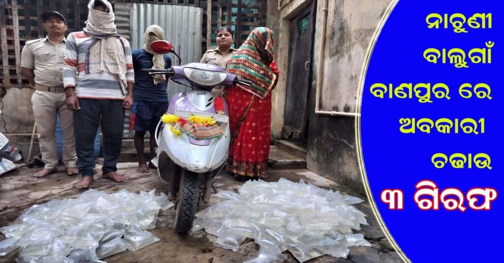 ବାଣପୁର ବାଲୁଗାଁ ନାଚୁଣୀ ଥାନା ଅଞ୍ଚଳରେ ଅବକାରୀ ଚଢାଉ : ତିନି ଗିରଫ !!!