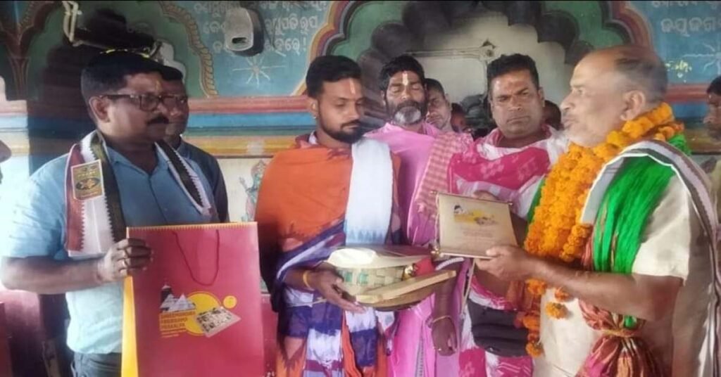 ନୟାଗଡ ( ଆୱାଜ ମିଡ଼ିଆ ) – ବିଶ୍ବଭୂଷଣ ମହାପାତ୍ର : ଶ୍ରୀମନ୍ଦିର ପରିକ୍ରମା ପ୍ରକଳ୍ପର ଶୁଭ ଉଦ୍‌ଘାଟନର ନିମନ୍ତ୍ରଣ ପତ୍ର ନେଇ ଶ୍ରୀମନ୍ଦିର ପ୍ରଶାସନ ତରଫରୁ ଦୁଇ ଜଣ ସେବାୟତ କଣ୍ଟିଲୋ ନୀଳମାଧବ ମନ୍ଦିରକୁ ଆସିଥିଲେ । ସେମାନଙ୍କୁ ଜିଲ୍ଲା ପ୍ରଶାସନର ନିର୍ଦ୍ଦେଶ କ୍ରମେ ସ୍ଥାନୀୟ ତହସିଲଦାର ଏବଂ ନୀଳମାଧବ ମନ୍ଦିରର ସେବାୟତ ମାନେ ପୁଷ୍ପମାଳ ତଥା ସଂକୀର୍ତନ ମଣ୍ଡଳୀ ଦ୍ୱାରା ସ୍ୱାଗତ କରି ମନ୍ଦିରକୁ ପାଛୋଟି ନେଇଥିଲେ । ପ୍ରଭୁ ନୀଳମାଧବଙ୍କ ସମ୍ମୁଖରେ ଶ୍ରୀମନ୍ଦିରରୁ ଆସିଥିବା ସେବାୟତ ମାନେ ନୀଳମାଧବଙ୍କ ସେବାୟତ ମାନଙ୍କୁ ନିମନ୍ତ୍ରଣ ଦେଇଥିଲେ । ଶ୍ରୀମନ୍ଦିର ପ୍ରଶାସନ ତରଫରୁ ନୟାଗଡ଼ ଜିଲ୍ଲାର ସମସ୍ତ ଜଗନ୍ନାଥ ପ୍ରେମୀ ଭକ୍ତମାନଙ୍କ ଠାରୁ ତା. ୦୬.୦୧.୨୦୨୪ରିଖରୁ ତା.୧୫.୦୧.୨୦୨୪ରିଖ ପର୍ଯ୍ୟନ୍ତ ମୁଠାଏ ଅରୁଆ ଚାଉଳ ଏବଂ ଗୋଟିଏ ଗୁଆ ଶ୍ରୀ ଜଗନ୍ନାଥଙ୍କ ଉଦ୍ଦେଶ୍ୟରେ ସମର୍ପଣ କରିବା ପାଇଁ ନିବେଦନ କରାଯାଇଛି । ଏଥି ନିମନ୍ତେ ନୟାଗଡ଼ ଜିଲ୍ଲାର ସମସ୍ତ ବ୍ଲକରେ ଆସନ୍ତା କାଲି ଠାରୁ ସମର୍ପଣ କାର୍ଯ୍ୟକ୍ରମ ଆରମ୍ଭ କରିବା ପାଇଁ ଜିଲ୍ଲା ପ୍ରଶାସନ ତରଫରୁ ସମସ୍ତ ବ୍ୟବସ୍ଥା କରାଯାଇଛି ।