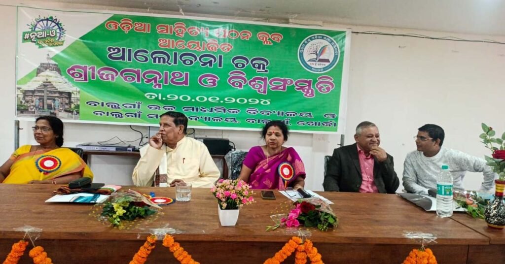 ବାଣପୁର ( ଆୱାଜ ମିଡ଼ିଆ ) – ରାକେଶ ସାହୁ : ରାଜ୍ୟ ସରକାରଙ୍କ ଆର୍ଥିକ ପ୍ରୋତ୍ସାହନରେ ନୂତନ ଉନ୍ନତ ଅଭିଳାଷ ଓଡିଶା ତଥା ଶ୍ରୀଜଗନ୍ନାଥ ପରିକ୍ରମା ପ୍ରକଳ୍ପ ଉଦ୍ଦେଶ୍ୟରେ ବାଲୁଗାଁ ଉଚ୍ଚ ମାଧ୍ୟମିକ ବିଦ୍ୟାଳୟ ଓ ବାଲୁଗାଁ ମହାବିଦ୍ୟାଳୟ ନୂଆ -ଓ ଓଡ଼ିଆ ସାହିତ୍ୟ ପ୍ରତିଯୋଗିତା ଆନୁକୂଲ୍ୟରେ ଶ୍ରୀଜଗନ୍ନାଥ ଓ ବିଶ୍ୱ ସଂସ୍କୃତି ଶୀର୍ଷକ ଆଲୋଚନାଚକ୍ର ପ୍ରାଧ୍ୟାପିକା ଡକ୍ଟର କଳ୍ପନା ଦାଶଙ୍କ ସଭାପତିତ୍ୱ ରେ ଅନୁଷ୍ଠିତ ହୋଇଯାଇଛି l ପ୍ରାରମ୍ଭରେ ନିମନ୍ତ୍ରିତ ଅତିଥିମାନେ ମହାପ୍ରଭୁ ଶ୍ରୀଜଗନ୍ନାଥଙ୍କ ମୂର୍ତ୍ତିରେ ପୁଷ୍ପମାଲ୍ୟ ଅର୍ପଣ ସହ ପ୍ରଦୀପ ପ୍ରଜ୍ବଳନ କରି ଆଲୋଚନା ଚକ୍ରକୁ ଅନୁଷ୍ଠାନିକ ଭାବେ ଉଦଘାଟନ କରିଥିଲେ l ଯୁକ୍ତ ଦୁଇ ଅଧ୍ୟକ୍ଷl ଡକ୍ଟର ଜୟନ୍ତୀ ସାମଲଙ୍କ ଅତିଥି ପରିଚୟ ପରେ ଡକ୍ଟର କଳ୍ପନା ଦାଶ ଅତିଥିମାନଙ୍କୁ ଉତ୍ତରୀୟ ପ୍ରଦାନ କରି ସମ୍ବର୍ଦ୍ଧିତ କରିବା ପରେ ସ୍ୱାଗତ ଭାଷଣ ପ୍ରଦାନ କରିଥିଲେ l