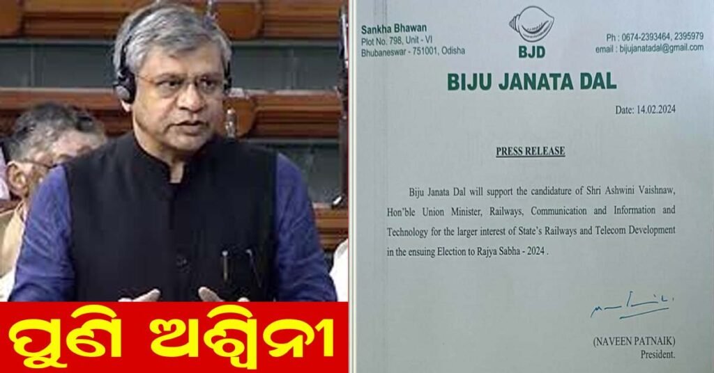 ବିଜେଡି ତରଫରୁ ମିଳିଲା ସମର୍ଥନ : ଅଶ୍ୱିନୀ ବୈଷ୍ଣବ ଓଡ଼ିଶାରୁ ପୁଣି ରାଜ୍ୟସଭା ପ୍ରାର୍ଥୀ !!!