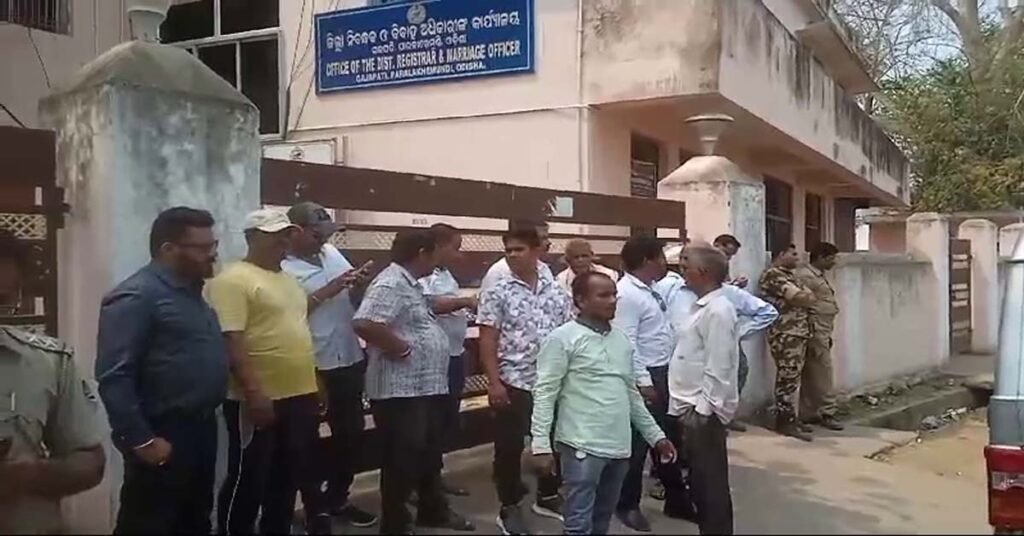 ଜିଲ୍ଲା ନିବନ୍ଧକ କାର୍ଯ୍ୟାଳୟ ସମ୍ମୁଖରେ ବେଞ୍ଚ ମାର୍କ ଭାଲ୍ୟୁ ବୃଦ୍ଧି ନେଇ ଓକିଲ ଓ ଜନସାଧାରଣ ଙ୍କ ପ୍ରତିବାଦ !!!