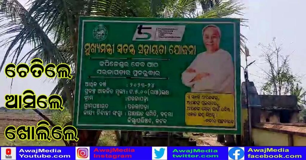 ବଡମ୍ବା ( ଆୱାଜ ମିଡ଼ିଆ ) – ପ୍ରତାପ ନାୟକ : ଆଦର୍ଶ ଆଚରଣ ବିଧି ଲାଗିବା ପରେ ଆରମ୍ଭ ହୋଇଛି କାର୍ଯ୍ୟାନୁଷ୍ଠାନ ! ବିଭିନ୍ନ ସ୍ଥାନରେ ଲାଗିଥିବା ହୋଡିଂ, ବ୍ୟାନରକୁ ହଟାଉଛି ପ୍ରଶାସନ ! ଆଗାମୀ ସାଧାରଣ ନିର୍ବାଚନ ପାଇଁ ତାରିଖ ଘୋଷଣା ସହ ଲାଗୁ ହୋଇଛି ଆଦର୍ଶ ଆଚରଣ ବିଧି । ଏନେଇ ବିଭିନ୍ନ ସ୍ଥାନରେ ଲାଗିଥିବା ନେତାଙ୍କର ଶୁଭେଚ୍ଛା ହୋର୍ଡିଂ ଓ ବ୍ୟାନରକୁ ପ୍ରଶାସନ ପକ୍ଷରୁ ହଟା ଯାଉଥିବା ଦେଖିବାକୁ ମିଳିଛି । ବଡମ୍ବା ବ୍ଲକ ଅଧିନସ୍ଥ ପରଜପଡା ପଞ୍ଚାୟତ ରେ ଥିବା ଦେଉଳି ଗ୍ରାମରେ କପିଳେଶ୍ଵର ମନ୍ଦିର ପରିସରରେ 5T ବୋର୍ଡ ସହିତ ମୁଖ୍ୟମନ୍ତ୍ରୀ ଙ୍କ ଫଟୋ ଚିତ୍ର ଥିବା ବୋର୍ଡ ଲାଗିଥିଲା ! ସ୍ଥାନୀୟ କିଛି ଲୋକଙ୍କ ଅଭିଯୋଗ କ୍ରମେ ଗଣମାଧ୍ୟମ ପ୍ରତିନିଧି ଖବର ପ୍ରସାରଣ ପାଇଁ ସେ ସ୍ଥାନରେ ପହଂଚି ଭିଡିଓ ନେବା ପରେ ଦେଖିବାକୁ ମିଳିଛି ପ୍ରଶାସନିକ ତତ୍ପରତା ! ଘଟଣାସ୍ଥଳରେ ଅଧିକାରୀ ପହଞ୍ଚି ସେ ବୋର୍ଡ କୁ ହଟାଇଥିବାର ଜଣାଯାଇଛି !