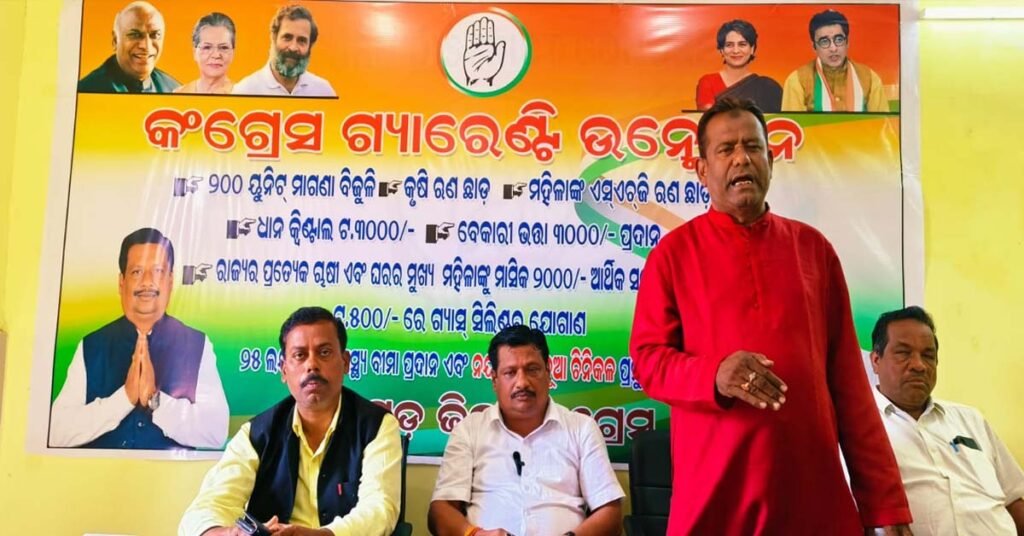 ନୟାଗଡ ( ଆୱାଜ ମିଡ଼ିଆ ) – ବିଶ୍ବଭୂଷଣ ମହାପାତ୍ର : ୨୦୨୪ ସାଧାରଣ ନିର୍ବାଚନ ପରିପ୍ରେକ୍ଷୀରେ ପ୍ରଦେଶ କଂଗ୍ରେସ କମିଟି ସଭାପତି ଆମର ପ୍ରିୟ ନେତା ଶରତ ପଟ୍ଟନାୟକ ରାଜ୍ୟ ବାସୀଙ୍କ ପାଇଁ କଂଗ୍ରେସ ର ଦଶ ଦଫା ଗ୍ୟାରେଣ୍ଟି କାର୍ଡ କୁ ନୟାଗଡ ଜିଲ୍ଲା କଂଗ୍ରେସ କାର୍ଯ୍ୟାଳୟ ଜିଲ୍ଲା କଂଗ୍ରେସ ସଭାପତି ବରିଷ୍ଠ ଆଇନଜୀବୀ ରଣଜିତ ଦାଶ ଉନ୍ମୋଚନ କରିଛନ୍ତି l ନୟାଗଡ ଜିଲ୍ଲା ବାସୀ ଙ୍କ ପାଇଁ ନୟାଗଡ ରେ ନୂଆ ଚିନିକଳ ସ୍ଥାପନ ଗ୍ୟାରେଣ୍ଟି ସହ ରାଜ୍ୟ ବାସୀଙ୍କୁ କଂଗ୍ରେସ ଦଳର ୯ ଗ୍ୟାରେଣ୍ଟି ମଧ୍ୟରେ ୧. ଗୃହ ଜ୍ୟୋତି ଯୋଜନା ରେ ରାଜ୍ୟର ପ୍ରତ୍ୟେକ ଘରୋଇ ବିଦ୍ୟୁତ ଉପୋଭୋକ୍ତା ଙ୍କ ପାଇଁ ୨୦୦ ୟୁନିଟ ବିଜୁଳି ଦେୟ ଛାଡ଼, ୨. ଯୁବବିକାଶ ଯୋଜନା ରେ ରାଜ୍ୟର ୫ ଲକ୍ଷ ଯୁବକ ଯୁବତୀ ଙ୍କ ପାଇଁ ନିଯୁକ୍ତି ବ୍ୟବସ୍ଥା ସହିତ ମାସିକ ୩000 ଟଙ୍କା ବେକାରୀ ଭତ୍ତା, ୩. କୃଷକ ବନ୍ଧୁ ଯୋଜନା ରେ ବୋନସ ସହିତ ଧାନ ର ମୂଲ୍ୟ କୁଇଣ୍ଟାଲ ପ୍ରତି ୩000 ଟଙ୍କା, କୃଷକ ମାନଙ୍କ ପାଇଁ ମାସିକ ୨000 ଟଙ୍କା ପେନସନ ଏବଂ କୃଷି ଋଣ ଛାଡ଼, ୪. ଗୃହଲଷ୍ମୀ ଯୋଜନା ରେ ମହିଳା ସ୍ୱୟଂ ସହାୟକ ଗୋଷ୍ଠୀ ର ବ୍ୟାଙ୍କ ଋଣ ଛାଡ଼, ମହିଳାଙ୍କୁ ୨000 ଟଙ୍କା, ଆଦିବାସୀ-ଦଳିତ ମହିଳାଙ୍କୁ ମାସିକ ୩000 ଟଙ୍କା ଭତ୍ତା ଏବଂ ମାସକୁ ୫00 ଟଙ୍କାରେ ଗ୍ୟାସ ସିଲିଣ୍ଡର, ୫. ଜନକଲ୍ୟାଣ ଯୋଜନା ରେ ୨୫ ଲକ୍ଷ ଟଙ୍କା ପର୍ଯ୍ୟନ୍ତ ସ୍ୱାସ୍ଥ୍ୟ ବୀମା ମାଧ୍ୟମ ରେ ମାଗେଣା ଚିକିତ୍ସା ବ୍ୟବସ୍ଥା, ୬.ବାର୍ଦ୍ଧକ୍ୟ ଭତ୍ତା, ବିଧବା ଭତ୍ତା, ଦିବ୍ୟାଙ୍ଗ ଭତ୍ତା ମାସିକ ୨000 ଟଙ୍କା, ୭.ଚିଟଫଣ୍ଡ ପ୍ରଭାବିତ ଜମାକାରୀ ମାନଙ୍କୁ ୬ ମାସ ମଧ୍ୟରେ ସୁଧ ସହ ଜମାରାଶି ଫେରସ୍ତ, ୮.ଶିକ୍ଷାନୁଷ୍ଠାନ ଓ ଚାକିରୀ କ୍ଷେତ୍ରରେ ପଛୁଆ ବର୍ଗ ପାଇଁ ୨୭%ସ୍ଥାନ ସଂରକ୍ଷଣ ବ୍ୟବସ୍ଥା, ୯. ଆଦିବାସୀ ଓ ଦଳିତ ବର୍ଗଙ୍କ ନିଜ ଜମି ଓ ଜଙ୍ଗଲ ଜମି ଉପରେ ସମ୍ପୂର୍ଣ୍ଣ ଅଧିକାର, ୧୦. ୧00ଦିନ ମଧ୍ୟରେ ପେସା ଆଇନ କୁ କଡାକଡି ଭାବେ ଲାଗୁ କରାଯିବା ପାଇଁ କଂଗ୍ରେସ ସଂକଳ୍ପବଦ୍ଧ l