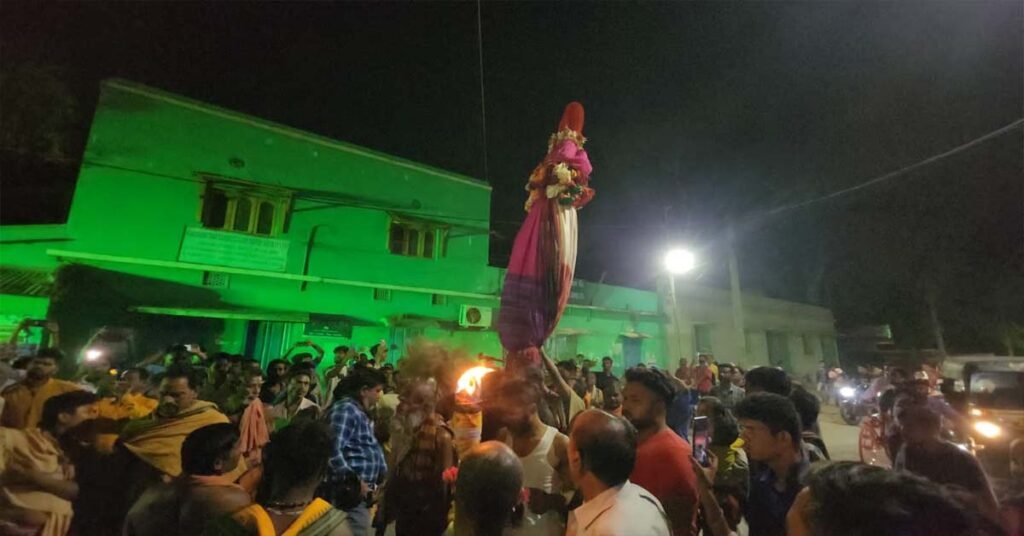 ବାଣପୁର ( ଆୱାଜ ମିଡ଼ିଆ ) – ରାକେଶ ସାହୁ : ମା’ ଙ୍କ ପୀଠରେ ବାରମାସରେ ତେର ଯାତ । ଓଡ଼ିଆ ନବ ବର୍ଷ ପବିତ୍ର ପଣା ସଂକ୍ରାନ୍ତିରେ ପୀଠରେ ସମସ୍ତ ନୀତିକାନ୍ତି ସାରି ଗୋଧୂଳି ଲଗ୍ନରେ ନିଶଙ୍କୁଡ଼ି ଧୂପ ପରେ ଘଣ୍ଟା ଘଣ୍ଟ କାହାଳୀ ଆଲଟଚାମର ସହିତ ଥାଟ ପଟୁଆରରେ ନିଯୋଗୀ ସେବାୟତଙ୍କ ସହ ଉତ୍ତର ଦିଗକୁ ଯାତ୍ରା ଆରମ୍ଭ କଲେ ମା’ ଭଗବତୀ । ନୂତନ ବର୍ଷ ପ୍ରାରମ୍ଭ ଦିନରେ ସୂର୍ଯ୍ୟ ଦେବତାଙ୍କ ବିଷୁବ ରେଖା ରେ ଅବସ୍ଥାନ ପରେ ଉତ୍ତରାୟଣ ଗତି ଆରମ୍ଭକୁ ଆଧାର କରି ମା’ଙ୍କ ଉତ୍ତରଦିଗ ରକ୍ଷାକାରିଣୀ, ଶୋଲରୀ ପାହାଡ଼ କୋଳରେ ପୂଜିତା ଭଉଣୀ ମା’ ଶିଦ୍ଧେଶ୍ଵରୀଙ୍କ ନିକଟକୁ ଯାତ୍ରା କରିବାର ପରମ୍ପରା କେଉଁ ପ୍ରାଚୀନ କାଳରୁ ଚଳି ଆସୁଛି । ଏହି ଅନୁସାରେ ଯାତ୍ରା ପଥରେ ବଡ଼ହନ୍ତୁଆଡ଼ ଗ୍ରାମର ଦଣ୍ଡଠାକୁର ରାଜେରାଜେଶ୍ଵରଙ୍କ ନିମନ୍ତ୍ରଣ ରକ୍ଷା କରି ଐତିହାସିକ ପଲଟଣ ପଡ଼ିଆରେ ଉଭୟ ଦେବା ଦେବୀ ବାଣ ରୋଷଣୀର ଶବ୍ଦ ସହିତ ଅଗଣିତ ଶ୍ରଦ୍ଧାଳୁଙ୍କ ହରିବୋଲ ହୁଳହୁଳି ଧ୍ବନୀରେ ଶ୍ରୀ ଶ୍ରୀ ଚରଣ ଚକା ଦେବଙ୍କୁ ଦର୍ଶନ କରିଫୁଲ ଚନ୍ଦନ ଗ୍ରହଣ କରିବା ପରେ ଗ୍ରାମ ପରିକ୍ରମା କରି ଟିକରାଇଁ ଦେବୀଙ୍କ ମନ୍ଦିର ପାର୍ଶ୍ଵ ଦେଇ ଯାତ୍ରା କରନ୍ତି । ଘନ ଅନ୍ଧାର ରାତିରେ ସେବାୟତ ମାନେ ଦିହୁଡ଼ି ଆଲୁଅରେ ଅଣବାଟରେ ରାମଚନ୍ଦ୍ରପୁର ଗ୍ରାମର ପାହାଡ଼ ତଳି ରାସ୍ତାରେ ଯାଇ ବାଟରେ ଡାଳ ଖାଇ ଠାକୁରାଣୀଙ୍କ ନିକଟରେ ବିଶ୍ରାମ ନିଅନ୍ତି । ଭାଟପଡ଼ାଗଡ଼ର ଦଳବେହେରା ଙ୍କ ନିମନ୍ତ୍ରଣ କ୍ରମେ ଗ୍ରାମବାସୀଙ୍କ ତରଫରୁ ପୁଷ୍ପଚନ୍ଦନ ଗ୍ରହଣ କରି ପଟୁଆରରେ ଗ୍ରାମ ପରିକ୍ରମା ପରେ ଶୋଲରୀ ପାହାଡ଼ର ଖୋଲରେ ପୂଜିତା ମା’ ଶିଦ୍ଧେଶ୍ଵରୀଙ୍କ ମନ୍ଦିରକୁ ବିଜେ କରନ୍ତି । ସେଠାରେ ମନ୍ଦିର ଜାନି ସେବାୟତଙ୍କ ଦ୍ଵାରା ଉଭୟ ଠାକୁରାଣୀଙ୍କୁ ନୈବେଦ୍ୟ ଅର୍ପଣ ପରେ ସେବାୟତ ମାନେ ପ୍ରସାଦ ଗ୍ରହଣ କରିବା ପରେ ଆଜ୍ଞାମାଳ ହୁଏ । ଆଗାମୀ ଶାରଦୀୟ ପର୍ବକୁ ଭଉଣୀ ଶିଦ୍ଧେଶ୍ଵରୀଙ୍କୁ ନିମନ୍ତ୍ରଣ କରି ଆଜ୍ଞାମାଳ ଧରି ଭାଟ ପଡ଼ାଗଡ଼ଦଳ ବେହେରାଙ୍କ ଉଆସ ଆଗରେ ଦଧିବାମନ ମନ୍ଦିର ସମ୍ମୁଖରେ ପନ୍ତି ଭୋଗ ଖାଇ ପାହାନ୍ତି ପହରକୁ ମନ୍ଦିରକୁ ପ୍ରତ୍ୟାବର୍ତ୍ତନ କରିବାର ପରମ୍ପରା କାହିଁ କେଉଁ କାଳରୁ ଚଳି ଆସିଛି । ମା’ଙ୍କୁ ପଣା ସଂକ୍ରାନ୍ତି ଦିନ ଦର୍ଶନ କରିବା ପାଇଁ ଅଗଣିତ ଶ୍ରଦ୍ଧାଳୁଙ୍କ ଭିଡ଼ ସହିତ ଭାଟପଡ଼ାଗଡ଼ ଉତ୍ସବ ମୁଖର ହୋଇ ଉଠିଥିଲା । ।