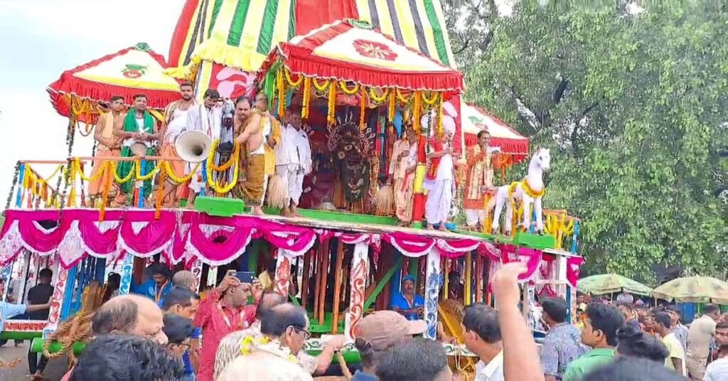 ଯାଜପୁର ( ଆୱାଜ ମିଡ଼ିଆ ) – ଜିଜ୍ଞାସୁ ସାହୁ : ସୁକିନ୍ଦାରେ ବାସି ରଥଯାତ୍ରା ଏକ ନିଆରା ପରମ୍ପରା । ବିଶ୍ଵ ପ୍ରସିଦ୍ଧ ପୁରୀ ରଥଯାତ୍ରାକୁ ସମ୍ମାନ ଦେଇ ତତ୍କାଳୀନ ସୁକିନ୍ଦା ରାଜା ସାହେବ ଏହି ନିଆରା ପରମ୍ପରା ଆରମ୍ଭ କରିଥିଲେ । ଶ୍ରୀକ୍ଷେତ୍ର ରଥଯାତ୍ରାରେ ସୁକିନ୍ଦା ରାଜାଙ୍କ ଚାମରସେବା ଥିବାରୁ ସୁକିନ୍ଦାରେ ଏହି ନିଆରା ପରମ୍ପରା ଚାଲି ଆସିଥିବା କୁହାଯାଏ । ପ୍ରତିବର୍ଷ ପରି ଚଳିତ ବର୍ଷ ବାହୁଡା଼ ଯାତ୍ରା ଅବସରରେ ଚତୁର୍ଦ୍ଧା ମୂର୍ତ୍ତିଙ୍କୁ ସେବାୟତ ମାନେ ରଥାରୂଢ଼ କରିବା ପରେ ରାଜା ସାହେବ ଭୁଦେବ ଭୂପତି ହରିଚନ୍ଦନ ମହାପାତ୍ର ଛେରାପହଁରା କରିଥିଲେ । ଯଥାବିଧି ପୂଜାର୍ଚ୍ଚନା କରିବା ପରେ ରଥକୁ ଥରେ ମାତ୍ର ଟଣାଯାଇଥିଲା । ବଡ଼ଦାଣ୍ଡରେ ଅଟକି ରହିଥିବା ରଥକୁ ପରଦିନ ଭକ୍ତମାନେ ନେଇ ମନ୍ଦିର ସମ୍ମୁଖ ରଥଖଳାରେ ପହଞ୍ଚାଇଥିଲେ । ରଥଟଣା ସମୟରେ ବିଶିଷ୍ଟ ପ୍ରବଚକ ବିଦ୍ୟାଧର ପୃଷ୍ଟି ଓ ବଂଶୀଧର ପରିଡ଼ା ଭକ୍ତ ମାନଙ୍କୁ ଜଗନ୍ନାଥ ଚେତନା ଶୁଣାଇବା ସହ ପ୍ରମୋଦ କୁମାର ଓଝା ଭଜନ ମାଧ୍ୟମରେ ଭକ୍ତ ମାନଙ୍କୁ ଉତ୍ସାହିତ କରିଥିଲେ । ଚଳିତ ବର୍ଷ ନୂତନ ବିଗ୍ରହ ସ୍ଥାପନ ହୋଇଥିବାରୁ ପ୍ରଭୁଙ୍କ ଦର୍ଶନ ପାଇଁ ୫୦ ହଜାରରୁ ଉର୍ଦ୍ଧ୍ଵ ପୁରୁଷ ଓ ମହିଳା ଭକ୍ତଙ୍କ ସମାଗମ ହୋଇଥିଲା ।