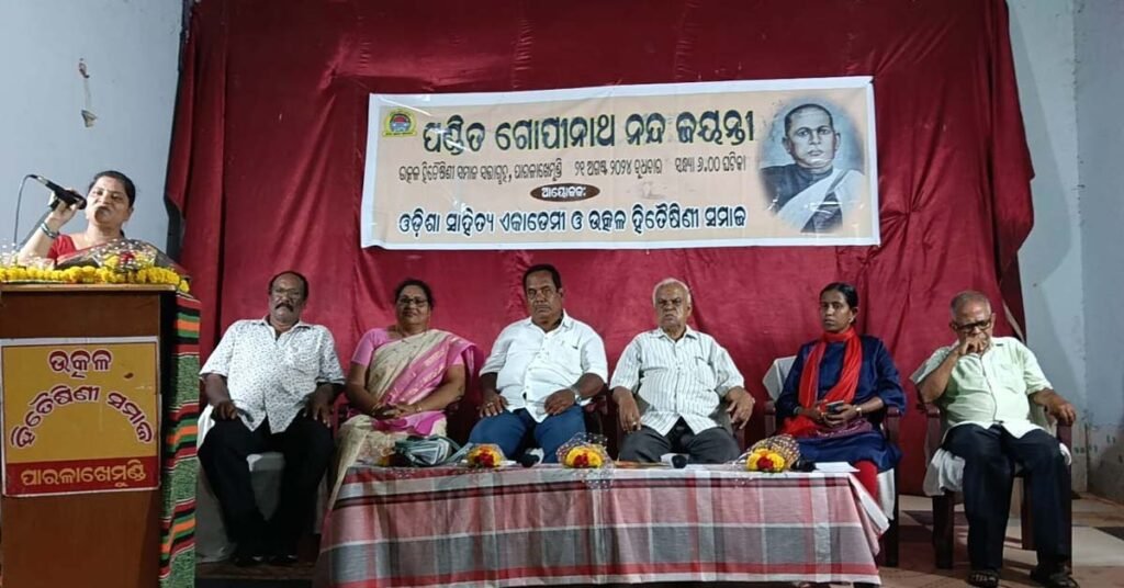 ଗଜପତି ( ଆୱାଜ ମିଡ଼ିଆ ) – ବିବେକାନନ୍ଦ ବେହେରା : ଗଜପତି ଜିଲ୍ଲା ସଦର ମହକୁମା ପାରଳାଖେମୁଣ୍ଡି ସ୍ଥିତ ଉତ୍କଳ ହିତୈଷିଣି ସମାଜ ସଭାଗୃହରେ ଓଡ଼ିଶା ସାହିତ୍ୟ ଏକାଡେମୀ ଭୁବନେଶ୍ୱର ଓ ଉତ୍କଳ ହିତୈଷିଣି ସମାଜ ପକ୍ଷରୁ ପଣ୍ଡିତ ଗୋପୀନାଥ ନନ୍ଦଙ୍କ ଜୟନ୍ତୀ ପାଳିତ ହୋଇ ଯାଇଛି । ବିଶିଷ୍ଟ ଅତିଥି ଭାବେ ବିଚିତ୍ରାନନ୍ଦ ବେବର୍ତ୍ତା, ସଭାପତି ଉପାନ୍ତ ପ୍ରହରୀ ପୂର୍ଣ୍ଣଚନ୍ଦ୍ର ମହାପାତ୍ର, ମୁଖ୍ୟବକ୍ତା ଡକ୍ଟର କଲ୍ୟାଣି ମିଶ୍ର, ସମ୍ମାନିତ ଅତିଥି ଭାବେ ଭାରତ ଭୂଷଣ ମହାନ୍ତି, ସଂସ୍କୃତି ଅଧିକାରିଣୀ ଅର୍ଚ୍ଚନା ମଙ୍ଗରାଜ, ଆଚାର୍ଯ୍ୟ ବିନୋଦ ଚନ୍ଦ୍ର ଜେନା ପ୍ରମୁଖ ମଞ୍ଚାସିନ ଥିଲେ । ଅତିଥି ମାନଙ୍କ ଦ୍ଵାରା ପ୍ରଦୀପ ପ୍ରଜ୍ବଳନ କରାଯାଇଥିଲା । ଶ୍ରୀମତି ବରଦା ଆଚାର୍ଯ୍ୟ ସ୍ୱାଗତ ଭାଷଣ ପ୍ରଦାନ କରିଥିଲେ । ଅତିଥି ମାନେ ପଣ୍ଡିତ ଗୋପୀନାଥ ନନ୍ଦଙ୍କ ଜୀବନୀ ଉପରେ ନିଜର ବକ୍ତବ୍ୟ ରଖିଥିଲେ ।