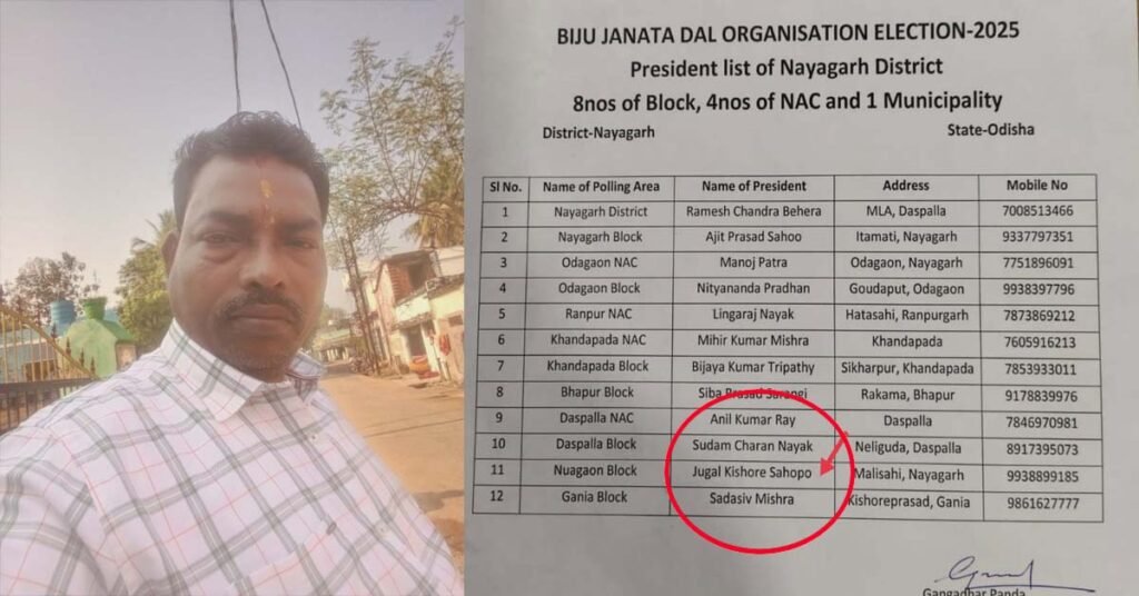 ନୂଆଗାଁ ବ୍ଲକ ର ନୂତନ ବିଜେଡି ସଭାପତି ଭାବେ ଯୁଗଳ କିଶୋର ସାହୁ ଙ୍କୁ ଦାୟିତ୍ୱ !!!