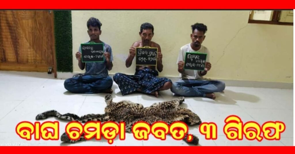 ବନବିଭାଗ ଦ୍ୱାରା ବାଘ ଚମଡା ଜବତ : ତିନି ଗିରଫ , ଦୁଇ ଫେରାର !!!