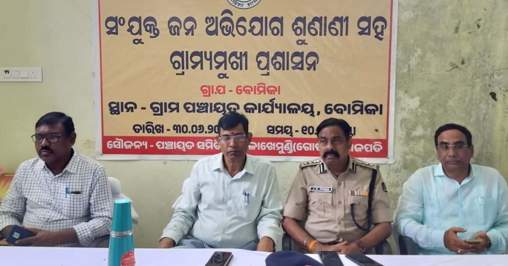 ଗଜପତି ( ଆୱାଜ ମିଡ଼ିଆ ) – ବିବେକାନନ୍ଦ ବେହେରା : ଗଜପତି ଜିଲ୍ଲା ଗୋସାଣୀ ବ୍ଲକ ଅନ୍ତର୍ଗତ ବୋମିକା ଗ୍ରାମ ପଞ୍ଚାୟତ ସମ୍ମିଳନୀ କକ୍ଷ ଠାରେ ଗ୍ରାମ୍ୟ ମୁଖୀ ପ୍ରଶାସନ ସହ ସଂଯୁକ୍ତ ଜନ ଅଭିଯୋଗ ଶୁଣାଣୀ ଅନୁଷ୍ଠିତ ହୋଇଯାଇଛି । ଏହି ଅଭିଯୋଗ ଶୁଣାଣିରେ ଗଜପତି ଜିଲ୍ଲାପାଳ ଶ୍ରୀଯୁକ୍ତ ବିଜୟ କୁମାର ଦାଶ,ଆରକ୍ଷୀ ଅଧିକ୍ଷକ ଶ୍ରୀ ଯତୀନ୍ଦ୍ର କୁମାର ପଣ୍ଡା ,ମୁଖ୍ୟ ଉନ୍ନୟନ ଅଧିକାରୀ ତଥା ନିର୍ବାହୀ ଅଧିକାରୀ ଜିଲ୍ଲାପରିଷଦ ଶ୍ରୀ ଶଙ୍କର କେରକେଟା ଓ ଉପଜିଲ୍ଲାପାଳ ପାରଳାଖେମୁଣ୍ଡି ଶ୍ରୀ ଅନୁପ ପଣ୍ଡା ଏହି ମିଳିତ ଜନ ଅଭିଯୋଗ ଶୁଣାଣୀରେ ଯୋଗଦାନ କରି ବୋମିକା ଗ୍ରାମ ପଞ୍ଚାୟତ ସମେତ କଣ୍ଟରାଗଡ , ମଧୁସୂଦନପୁର ଓ ମାଛମାରା ପଞ୍ଚାୟତର ସମୁଦାୟ ମୋଟ-୫୪ ଗୋଟି ଅଭିଯୋଗ ପତ୍ର ଗ୍ରହଣ କରାଯାଇଥିଲା। ସେଥି ମଧ୍ୟରୁ ବ୍ୟକ୍ତିଗତ ଅଭିଯୋଗ ସମସ୍ୟା- ୧୫ ଗୋଟି ,ଗ୍ରାମ ଭିତ୍ତିକ ସମସ୍ୟା- ୩୯ ଗୋଟି ଅଭିଯୋଗ ଆସିଥିଲା , ଅନ୍ୟ ସମସ୍ତ ଅଭିଯୋଗକୁ ତୁରନ୍ତ ସମାଧାନ କରିବା ପାଇଁ ବିଭାଗୀୟ ଅଧିକାର ଙ୍କୁ ଜିଲ୍ଲାପାଳ ନିର୍ଦ୍ଧେଶ ଦେଇଥିଲେ। ଆଜିର ଏହି ଅଭିଯୋଗ ଶୁଣାଣି ଶିବିରରେ ପ୍ରଧାନମନ୍ତ୍ରୀ ଆବାସୀ ଯୋଜନା,ସାମାଜିକ ସୁରକ୍ଷା,ଜମି ପଟ୍ଟା,ମନରେଗା,ଗୃହ ନିର୍ମାଣ, ରାସନ୍ କାର୍ଡ, ଶିକ୍ଷା,ଜଳ ସେଚନ, ସ୍ଵାସ୍ଥ୍ୟ ଓ ରାସ୍ତା ସମସ୍ୟା ବୋଲି ବିଭିନ୍ନ ସମସ୍ୟା ନେଇ ଅଭିଯୋଗ ଆସିଥିଲା । ଆଜିର ଗ୍ରାମ୍ୟ ମୁଖୀ ପ୍ରଶାସନ ସହ ସଂଯୁକ୍ତ ଜନ ଅଭିଯୋଗ ଶୁଣାଣୀ ସମୟରେ ଗୋସାଣୀ ପଞ୍ଚାୟତ ସମିତି ଅଧ୍ୟକ୍ଷ ଶ୍ରୀଯୁକ୍ତ ଏନ.ବୀରାରାଜୁ ,ସ୍ଥାନୀୟ ଗୋଷ୍ଠୀ ଉନ୍ନୟନ ଅଧିକାରୀ ଶ୍ରୀ ଗୌର ଚନ୍ଦ୍ର ପଟ୍ଟନାୟକ,ତହସିଲଦାର ଶ୍ରୀ ନାରାୟଣ ବେହେରା ଓ ଜନସ୍ବାସ୍ଥ୍ୟ ଅଧିକାରୀ ଡାକ୍ତର ମହମ୍ମଦ ମୁବାରଖ ଆଲ୍ଲୀ,ଜିଲ୍ଲା ସାମାଜିକ ସୁରକ୍ଷା ଓ ଭିନ୍ନକ୍ଷମ ସଶକ୍ତିକରଣ ଅଧିକାରୀ ଓ ସ୍ଥାନୀୟ ସରପଞ୍ଚ ଓ ଜନପ୍ରତିନିଧି ସମେତ ସମସ୍ତ ଜିଲ୍ଲା ସ୍ତରୀୟ ଅଧିକାରୀଗଣ ଅଭିଯୋଗ ଶୁଣାଣୀ ରେ ଉପସ୍ଥିତ ଥିଲେ।