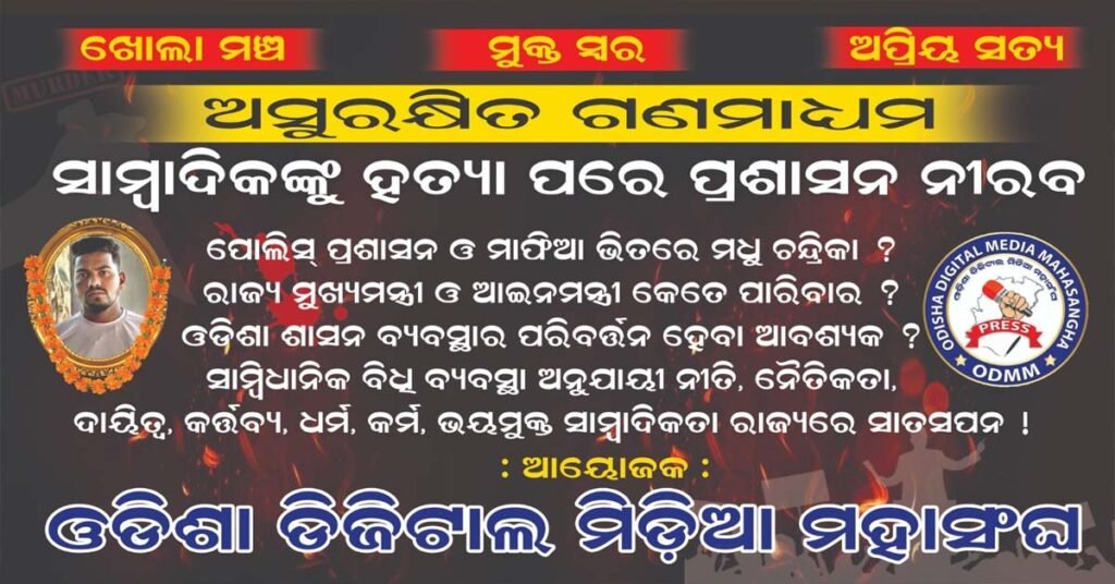 ଭୁବନେଶ୍ୱର ( ଆୱାଜ ମିଡ଼ିଆ ) – ଶାଶ୍ଵତୀ ନାୟକ : ଓଡିଶା ଡିଜିଟାଲ ମିଡ଼ିଆ ମହାସଂଘ ତରଫରୁ ରାଜ୍ୟର ସାମ୍ପ୍ରତିକ ପରିସ୍ଥତି ନେଇ ଖୋଲାମଞ୍ଚରେ ମୁକ୍ତ ସ୍ୱର କାର୍ଯ୍ୟକ୍ରମ ! ରାଜଧାନୀ ଜୟଦେବ ଭବନ ପାର୍କିଙ୍ଗ ପ୍ଲେସ ରେ ଆସନ୍ତା କାଲି ଦିନ ଏଗାର ଟା ସମୟରେ ଆୟୋଜିତ ହେବାକୁ ଥିବା ଏହି କାର୍ଯ୍ୟକ୍ରମରେ ବହୁ ଡିଜିଟାଲ ମିଡ଼ିଆ ପ୍ରତିନିଧି , ସାମାଜିକ କର୍ମୀ , ଆଇନଜୀବୀ , ବରିଷ୍ଠ ସାମ୍ବାଦିକ , ରାଜନୈତିକ ବ୍ୟକ୍ତିତ୍ୱ ଉପସ୍ଥିତ ରହିବା ପାଇଁ ସ୍ୱିକୃତୀ ପ୍ରଦାନ କରିଛନ୍ତି ! ମାଲକାନଗିରି ର ଡିଜିଟାଲ ମିଡିଆ ସାମ୍ବାଦିକ ଙ୍କୁ ନିର୍ମମ ହତ୍ୟା , ବାଲେଶ୍ବର ଏଫ ଏମ କଲେଜ ଘଟଣା , ବଳଙ୍ଗା , ବଡମ୍ବା ଘଟଣା ଠାରୁ ଆରମ୍ଭ କରି ରାଜନୈତିକ ହଇଚଇ ପର୍ଯ୍ୟନ୍ତ ବିଭିନ୍ନ ଘଟଣାରେ ଉପରେ ହେବ ଆଲୋଚନା ପର୍ଯ୍ୟାଲୋଚନା ! ଖୋଲା ମଞ୍ଚରେ ମୁକ୍ତ ସ୍ୱରରେ ପ୍ରକାଶିତ ଅପ୍ରିୟ ସତ୍ୟ ସରକାର ଙ୍କ ପାଖରେ ପହଂଚିବା ନେଇ ଆଶାବାଦୀ ଅଛି ଓଡିଶା ଡିଜିଟାଲ ମିଡ଼ିଆ ମହାସଂଘ !